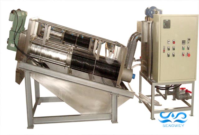 疊螺機脫水的工作原理是利用螺旋軸的旋轉,使污泥在螺旋軸和螺桿之間形成濾餅,并通過濾餅的過濾和擠壓來分離水分。疊螺機通常需要在污泥進入機器之前進行絮凝和沉淀,以減少雜質和懸浮物對機器的堵塞和磨損。因此,絮凝劑的添加是疊螺機污泥脫水過程中必不可少的一步。